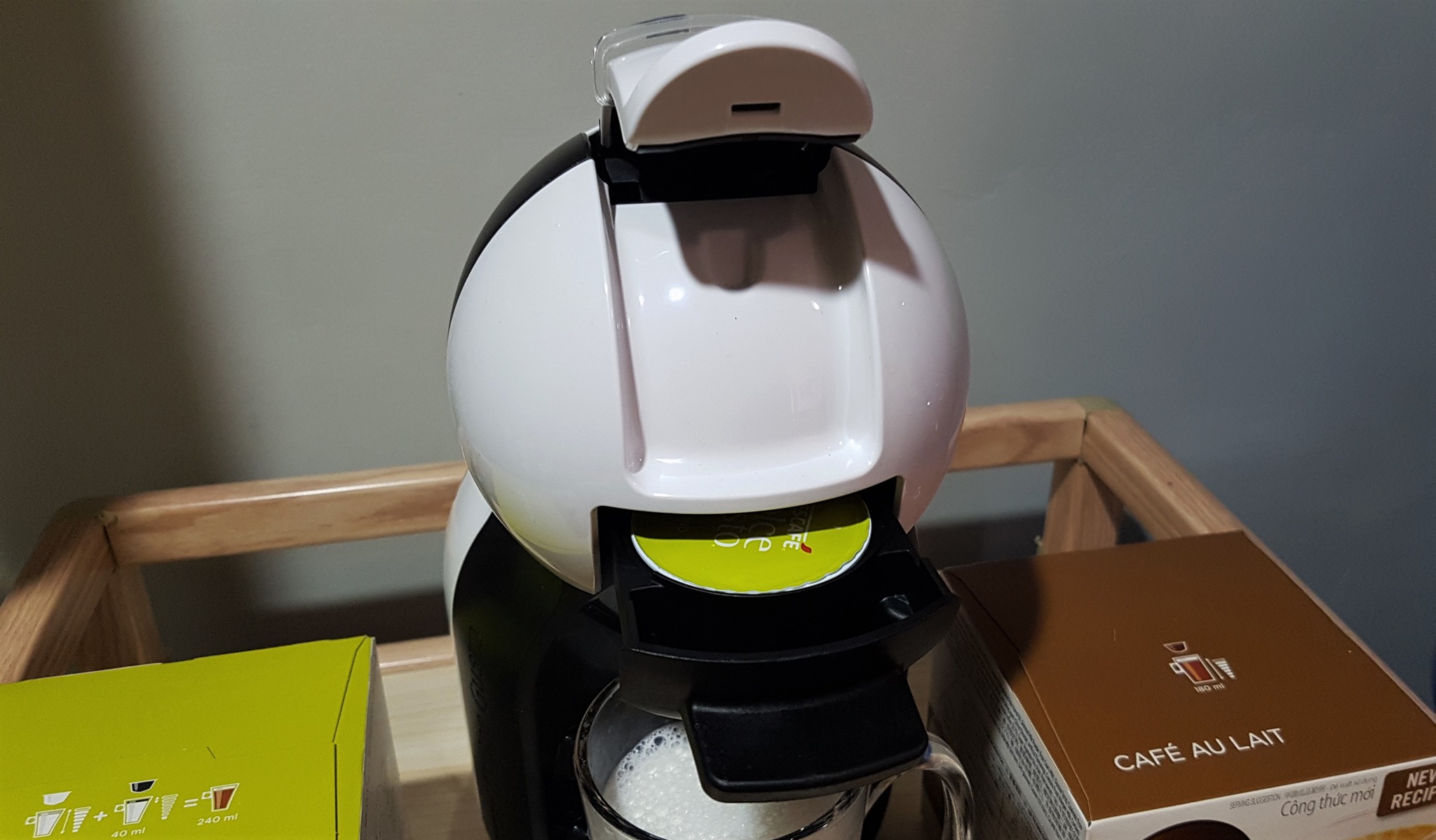 So if you’re bored with the usual brewed or instant coffee, or if you don’t want to spend a lot on coffee shops, you can now make your own coffee art using the Dolce Gusto Coffee machine. Their capsules come in different varieties such as Espresso, Capuccino, Cafe Latte, Cafe Au Lait, Vanilla Machiatto and much more. They even have a tea variant. I personally like the Cafe Au Lait, Capuccino and the Vanilla Machiatto.